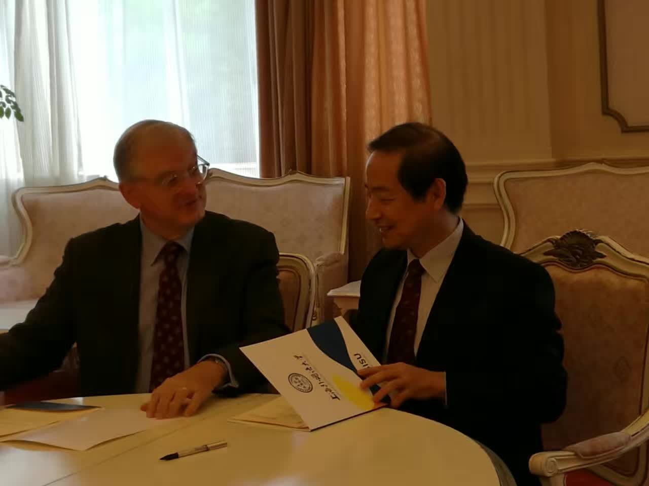 M. Frémont a d’abord exprimé ses remerciements pour l’accueil chaleureux de SISU. Il a présenté ensuite l’enseignement bilingue (anglais & français ) de l’uOttawa, ses disciplines spéciales et son partenariat avec l’Université Jiaotong de Shanghai. Il espère accueillir chez lui les étudiants de SISU en échange, et développer davantage le partenariat bilatéral.
